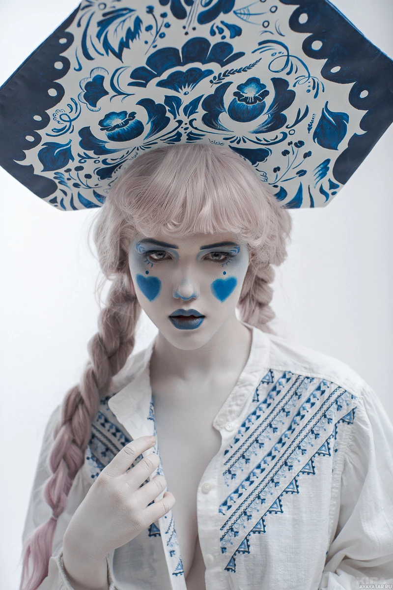 a creative blend of historical Dutch attire and makeup styles from various periods, resulting in a modern and artistic interpretation.