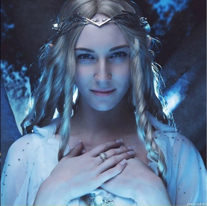 Lord of the Rings." She is dressed in an elven outfit and has long