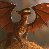 a fantasy scene featuring a dragon. The dragon has