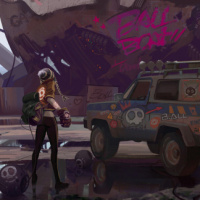 a post-apocalyptic scene featuring various elements. There is an ominous