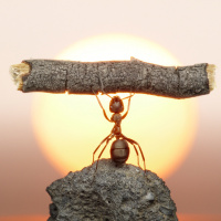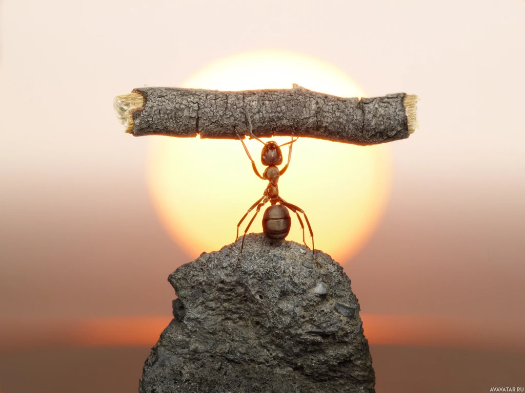 visual effect. The ant's pose gives it the appearance of being a "weightlifter" or engaging in human-like