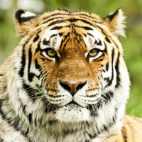 intense gaze, which adds a sense of connection between the viewer and the animal. The background suggests a forested area that could be part of the tiger's