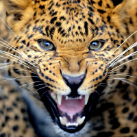 open mouth with sharp teeth and intense gaze. This is a wildlife photograph that captures