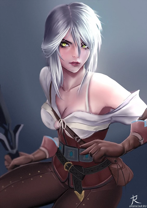 blonde hair, a stern expression, and is wearing armor with a sword at her side. The art style suggests it could be a piece of