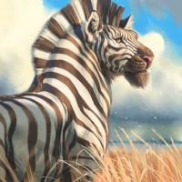 coat pattern and habitat than zebras. The picture shows the zebra standing in what appears to be a savannah or grassland environment during what could be either dawn or dusk given