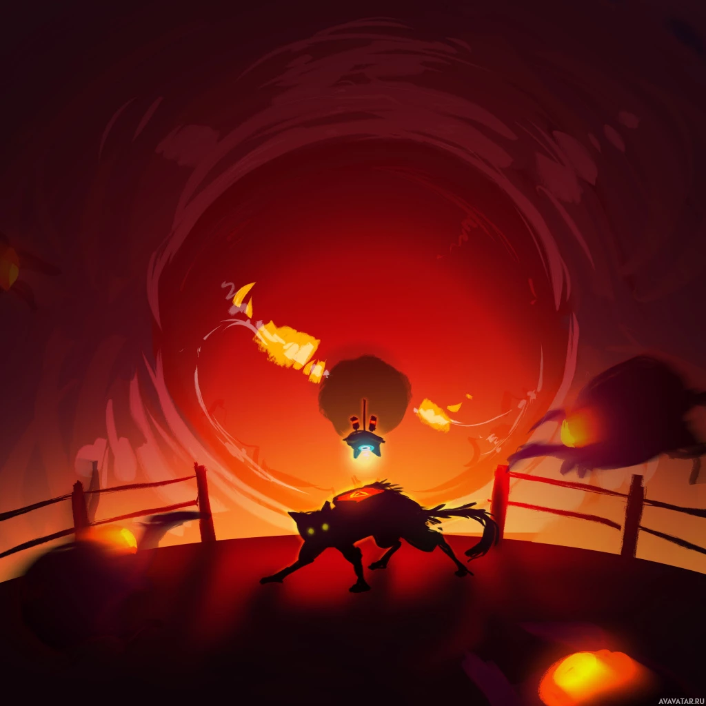 red sky filled with flying creatures that resemble birds or bats. The artwork showcases the game's distinctive silhouette style, which is reminiscent of a painting rather than a typical digital rendering.