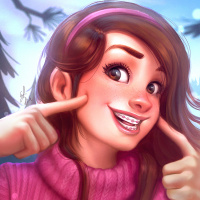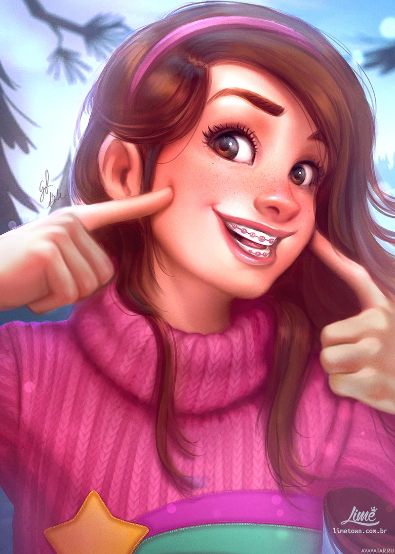 a playful gesture with her hand near her mouth. The artwork appears to be inspired by her