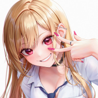 blonde hair and is wearing a school uniform, which suggests she might be a student or associated with an educational setting typical of Japanese anime. Her pose and expression convey a cheerful and approachable personality.