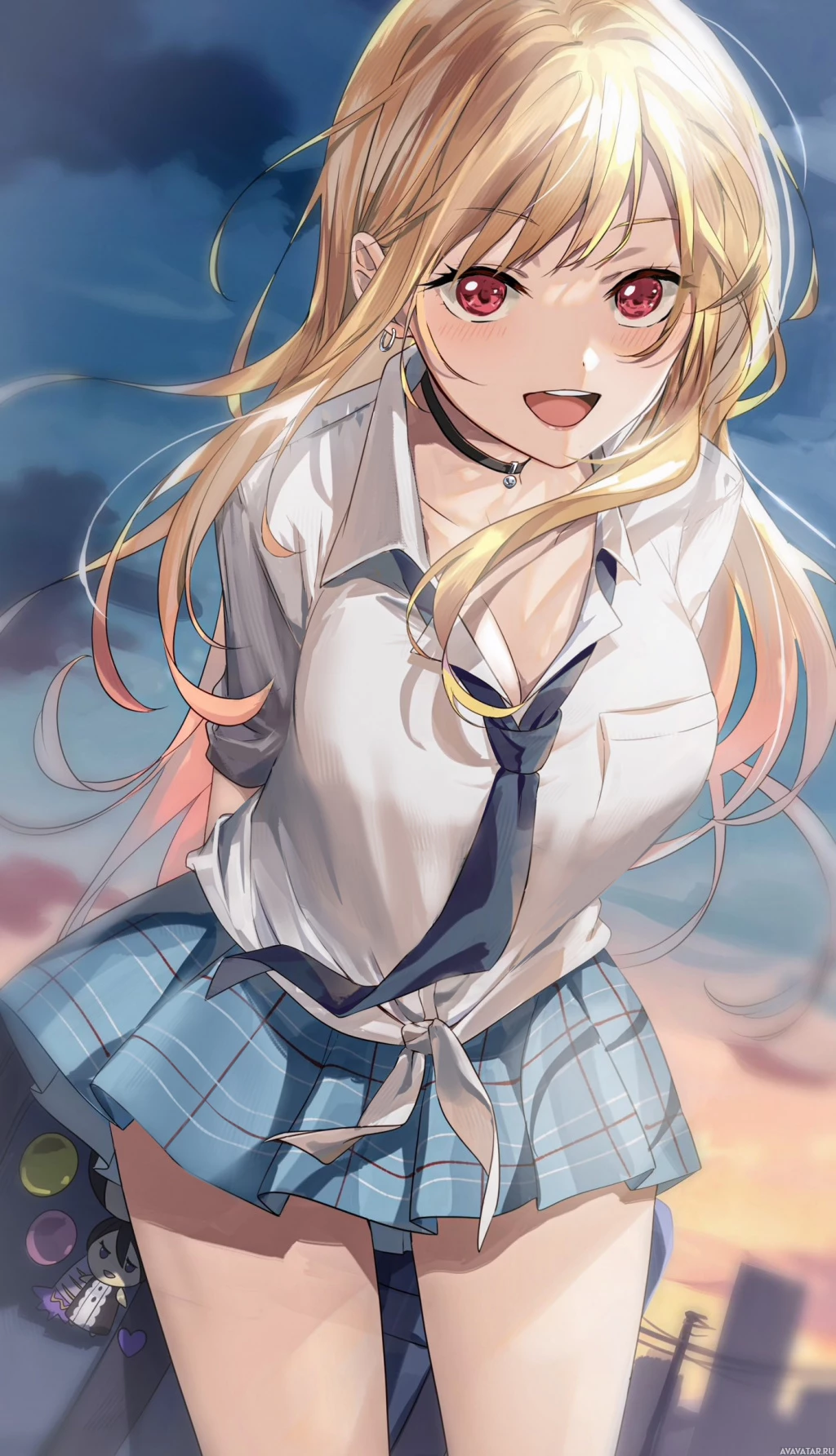 a school uniform, which includes a shirt, tie, and shorts, along with knee-high socks. There is also a backpack visible near her feet. This character is depicted in an anime style artwork, often associated with Japanese animation. The character's name or the context of her appearance is not provided in the image itself.