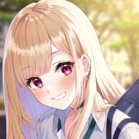 an outdoor setting during daytime, possibly near a park or street. The style of the character and the image is typical of Japanese anime artwork.