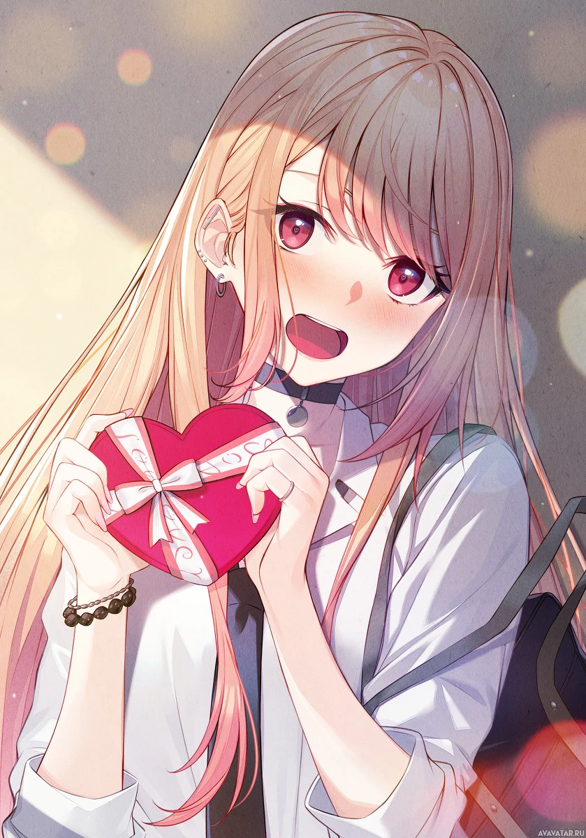 shaped object, which could be a keychain or a small decorative item, and her pose suggests she might be showing it off or admiring it. There are sparkling