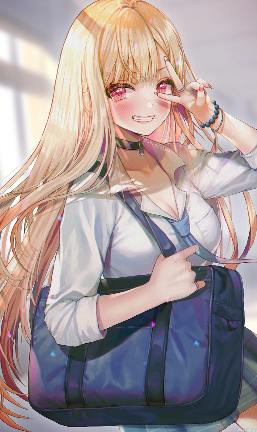 fan art related to the anime genre, and the character resembles Marin Kitagawa from the anime "My Teen Romantic Comedy SNAFU."