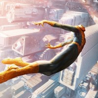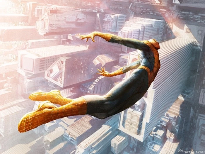 The image features a character known as Spider-Man, who is depicted in his iconic red and blue costume. He appears to be in the middle of