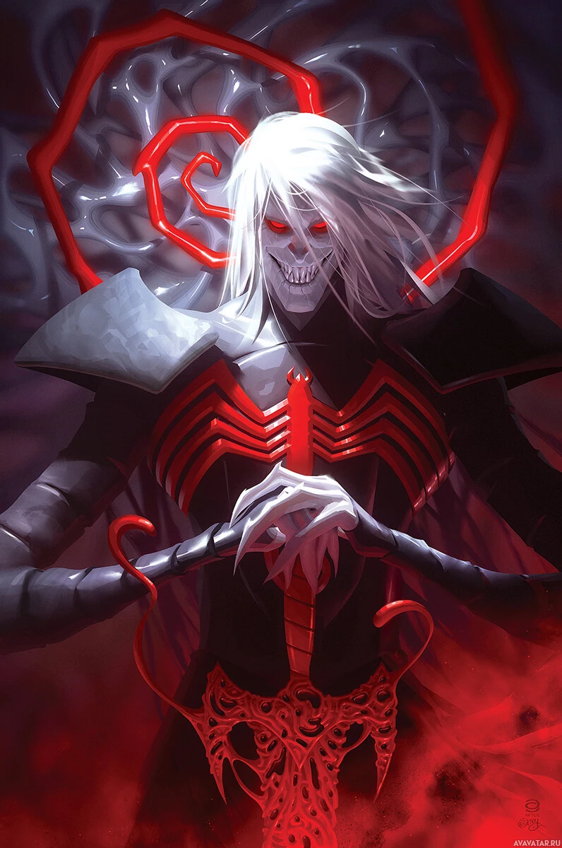 the fantasy genre, likely representing a villain or an antagonist. This character has