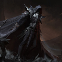 a fantasy character, likely from the genre of high fantasy. The character is dressed in what appears to be armor and a cape or robe that gives off