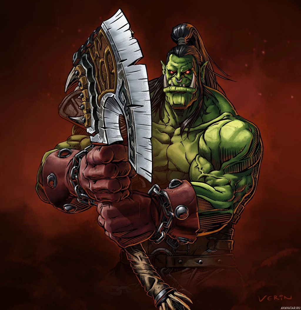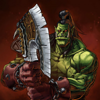 an orc character. The orc is prominently featured in the foreground, holding