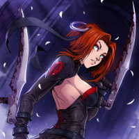 This image features an illustration of a character named "BloodRayne," who is known as the protagonist of