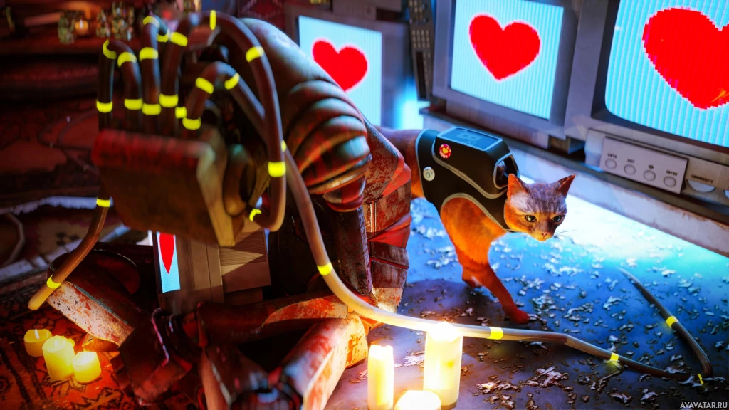 the video game Stray. In the game, players assume the role of a cat navigating through