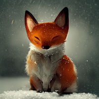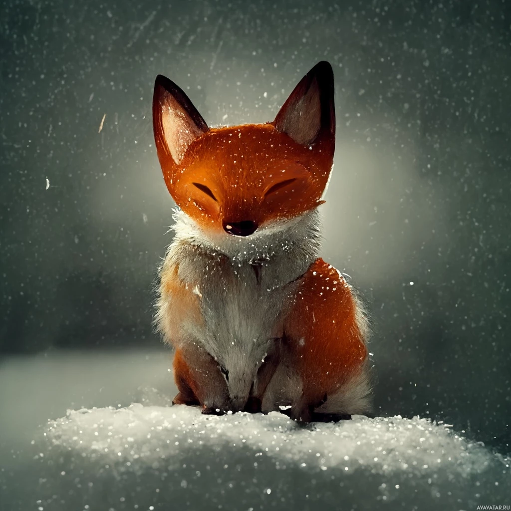 На картинке изображена милая лисичка, сидящая на снегу. Кажется, что она наслаждается мягким падением снежинок, закрыв глаза, как будто она получает удовольствие от происходящего или, возможно, даже дремлет. Окружающая обстановка кажется мирной и безмятежной, запечатлевая момент умиротворения среди тихой красоты природы.