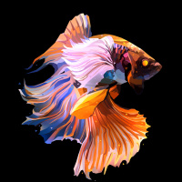 The image depicts a vibrant and colorful illustration of an angelfish. This fish is known for its long, flowing fins and