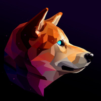 vibrant colors and geometric shapes creating the representation of the animal's features. The background is dark, which contrasts with the bright, multicolored elements of the artwork.