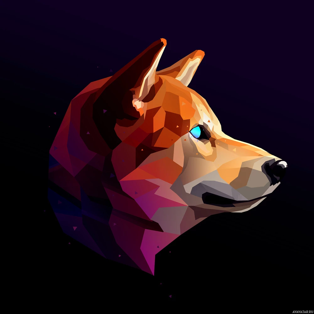 The image features a three-dimensional artwork of a dog's head. It appears to be styled in a pop art or graphic design manner, with