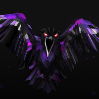 The image depicts a stylized, artistic representation of a crow. It has an intricate design with purple and black colors, giving it a somewhat abstract or digital art feel. This is not an actual photograph but rather a graphic illustration or logo.