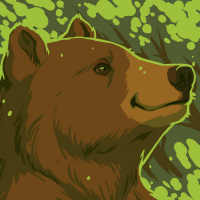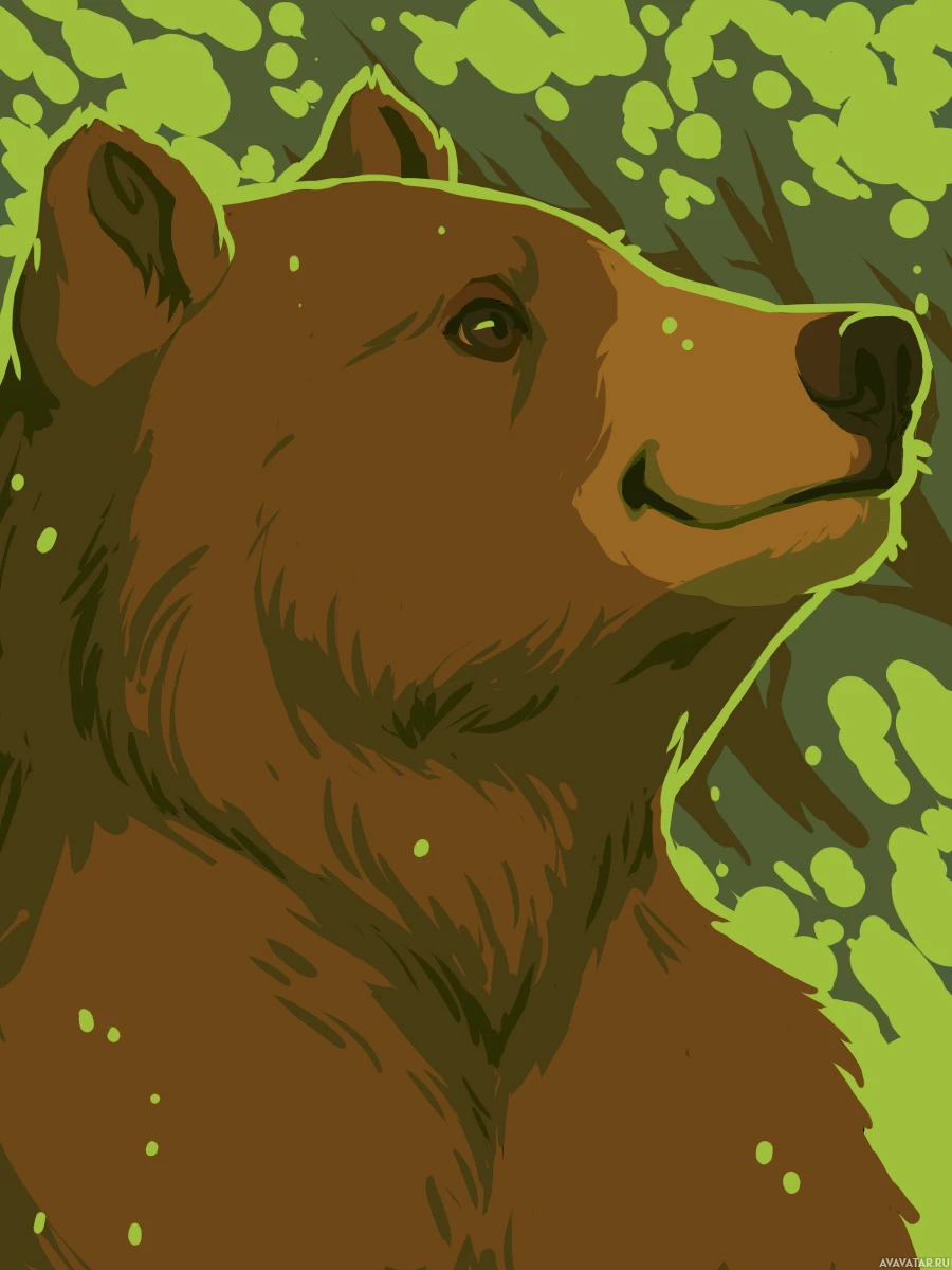 a brown bear. The background is simple with hints of greenery, possibly indicating