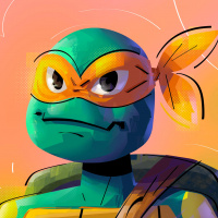 The image features an illustration of Michelangelo, one of the Teenage Mutant