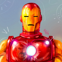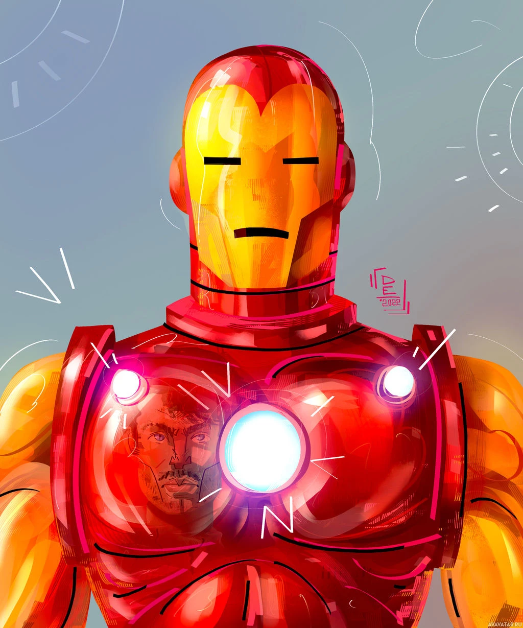 The image depicts an illustration of Iron Man, a fictional superhero character who appears in