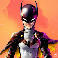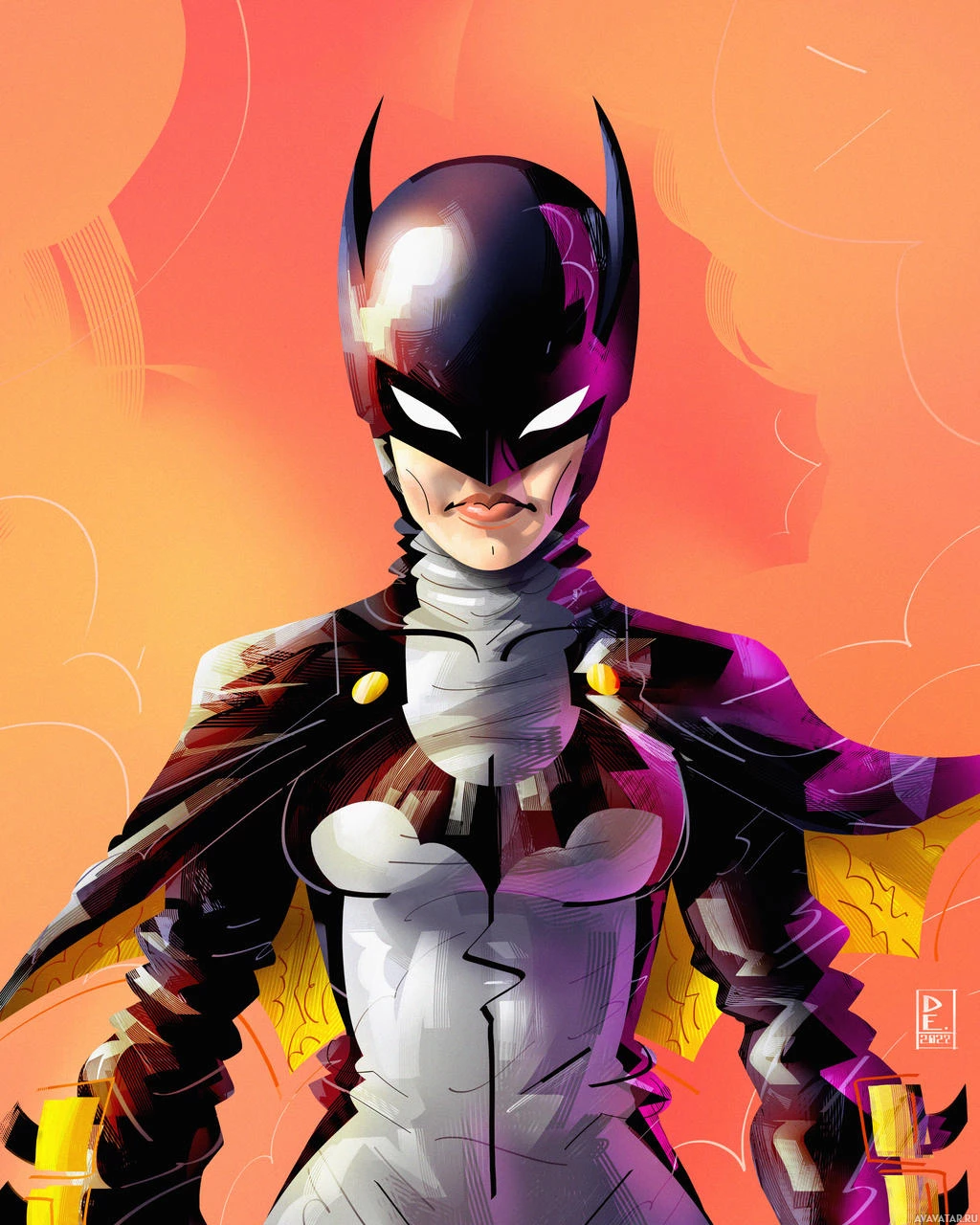 Это иллюстрация Бэтгерл, вымышленного персонажа из вселенной DC Comics. Она изображена в своем культовом черно-желтом костюме с капюшоном и накидкой, и на ней решительное выражение лица.