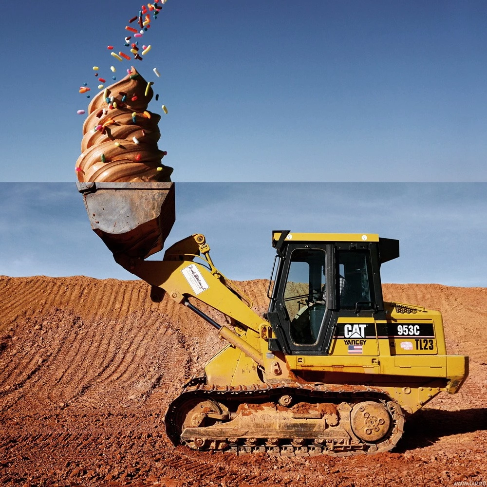 cream cones. The picture likely has been edited or created for artistic or humorous purposes, blending two disparate elements—construction equipment and