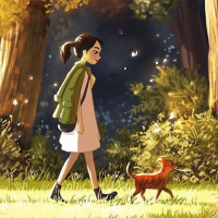 autumn leaves, indicating that the season could be fall. The atmosphere of the image suggests a peaceful and idyllic setting, possibly depicting a moment from daily life in a park or similar