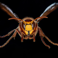dynamic position. This is likely an insect from the family Hymenoptera, known for their stinging ability.