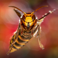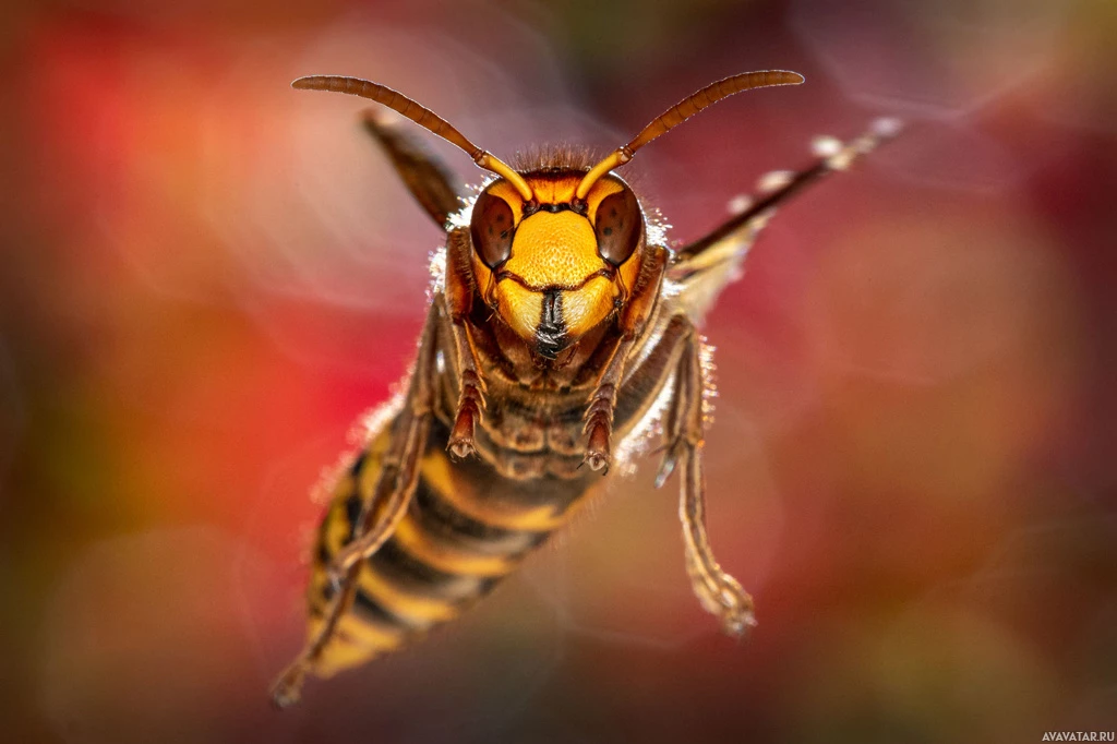 important role in pollination and the production of honey. They are not hornets, although they may sometimes be mistakenly identified as such due to their similar appearance. The background is blurred but appears to be