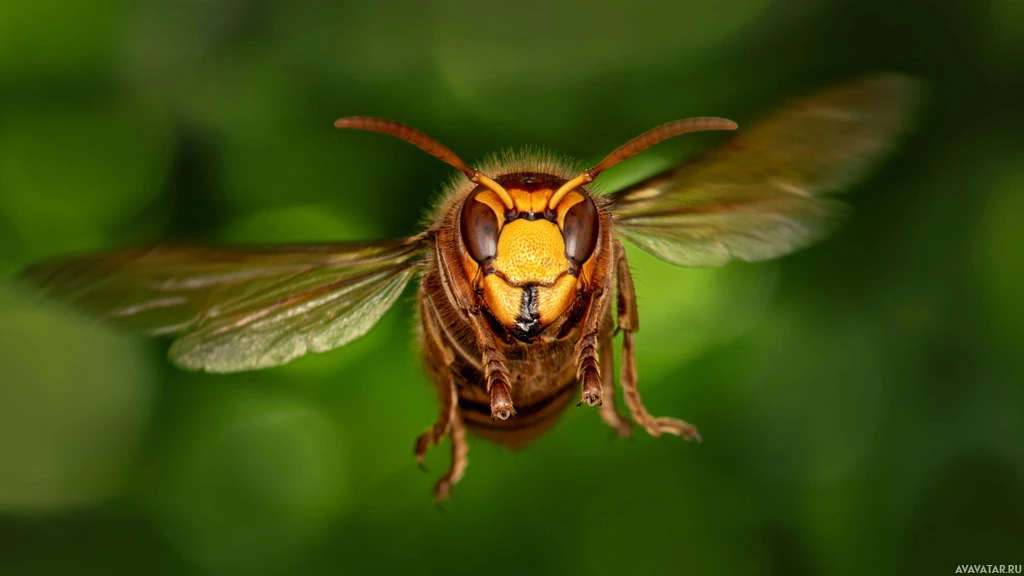 На картинке пчела пролетает близко к камере, что позволяет хорошо рассмотреть ее детали. Пчелы - это насекомые, которые играют важную роль в опылении растений. Они принадлежат к животному миру, поскольку являются живыми существами.
