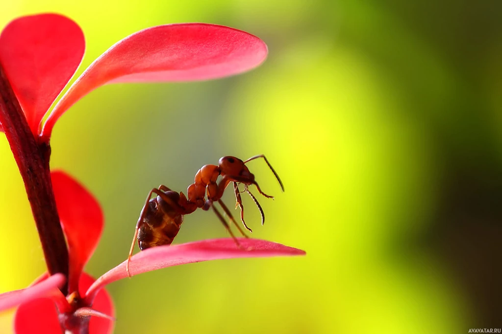 На рисунке изображен муравей, свисающий с листа, что является обычным поведением для муравьев при передвижении. Это тип поведения, который можно наблюдать у таких насекомых, как муравьи.