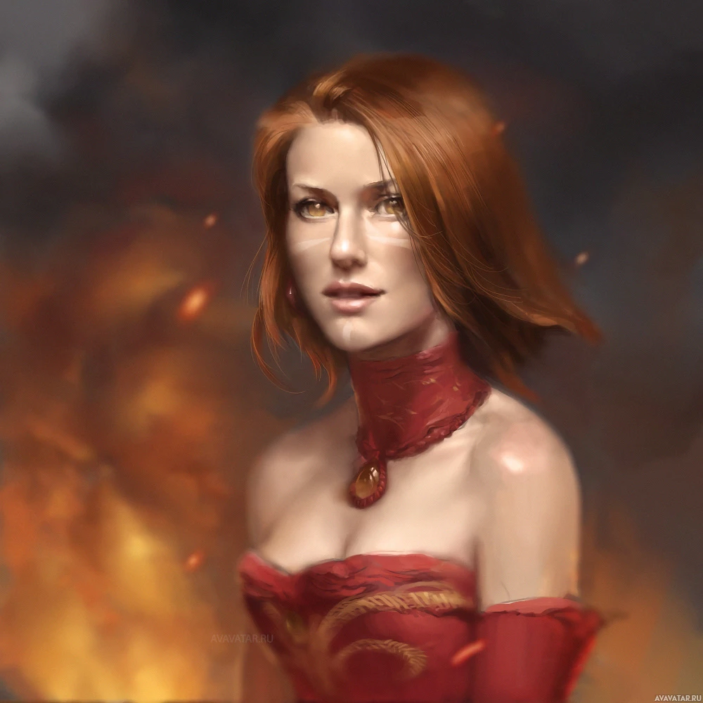 the video game Dota 2, known as Lina. She is illustrated in a stylized artwork that captures her essence as a heroine within the fantasy-themed