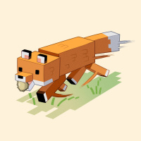 an animated version of a fox. The style is reminiscent of the graphics found in games like Minecraft, which often use blocky shapes and limited colors to represent characters and environments within their