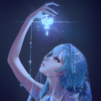 an animated character with blue hair and a crystal-like aura around her hands. She is holding what appears to be a heart-shaped object, possibly