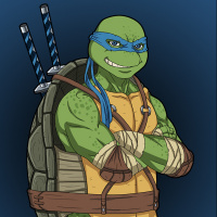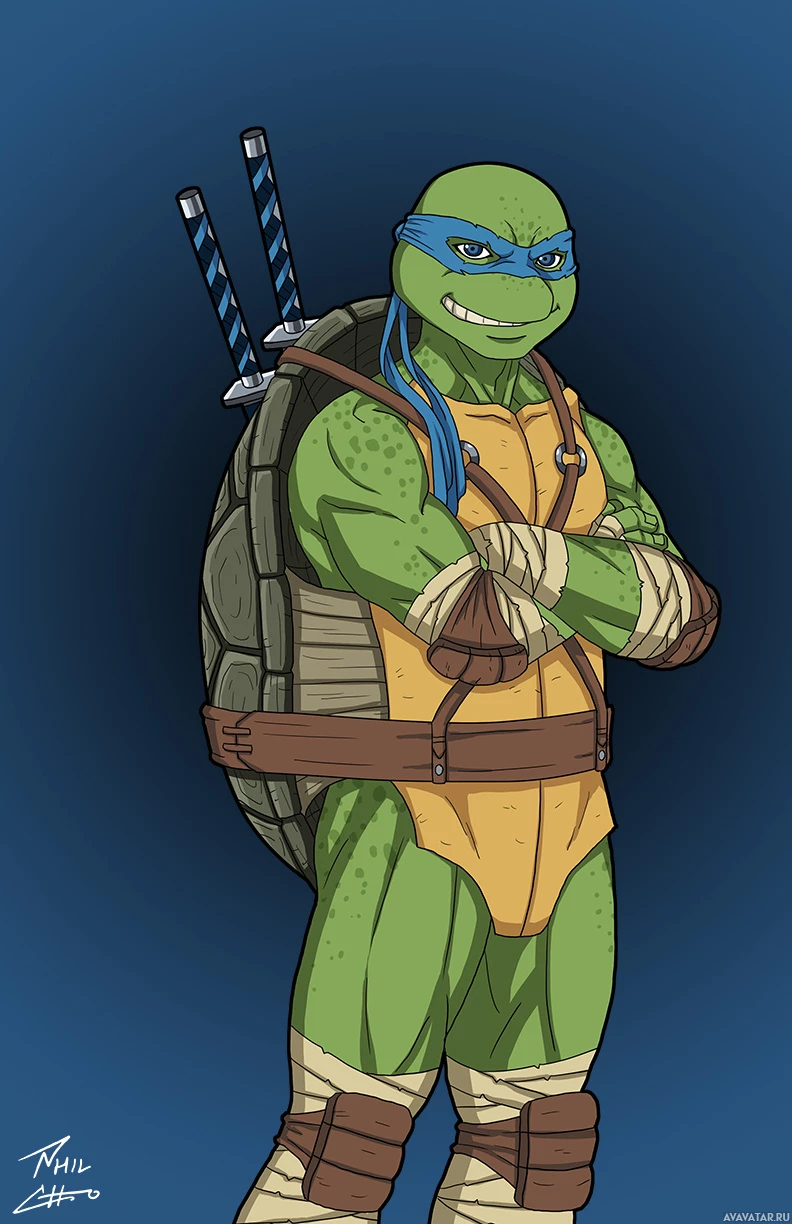 The image features an illustrated character who is known as Leonardo from the Teenage