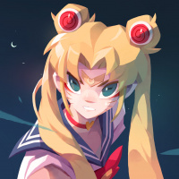 an illustrated character that resembles Sailor Moon, a popular anime and manga series. The character is shown with