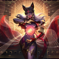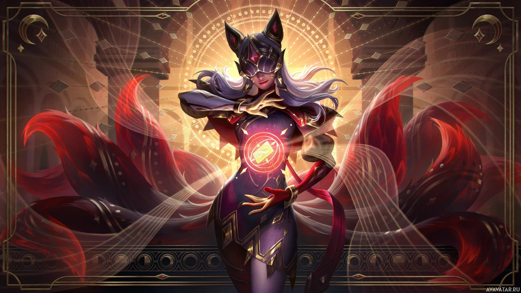an ornate setting with stylized decorations that suggest a mystical or magical environment. The character has wings sprouting from their back and is holding what appears to be a staff or wand. Their attire includes a skirt and armor, with