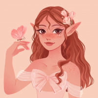 the character design. The color scheme is warm, predominantly pink and peach, which gives it a soft and delicate appearance.