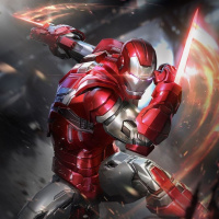 The image shows a character in red armor, known as Iron Man. This is an illustration of the character, not a photograph of a real person. Iron Man is a fictional superhero appearing in American comic books published by Marvel Comics.