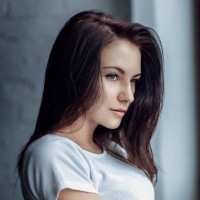 long hair and is wearing what looks like a casual, possibly athletic attire that includes a tank top or crop top and shorts. The setting seems to be indoors with the presence of