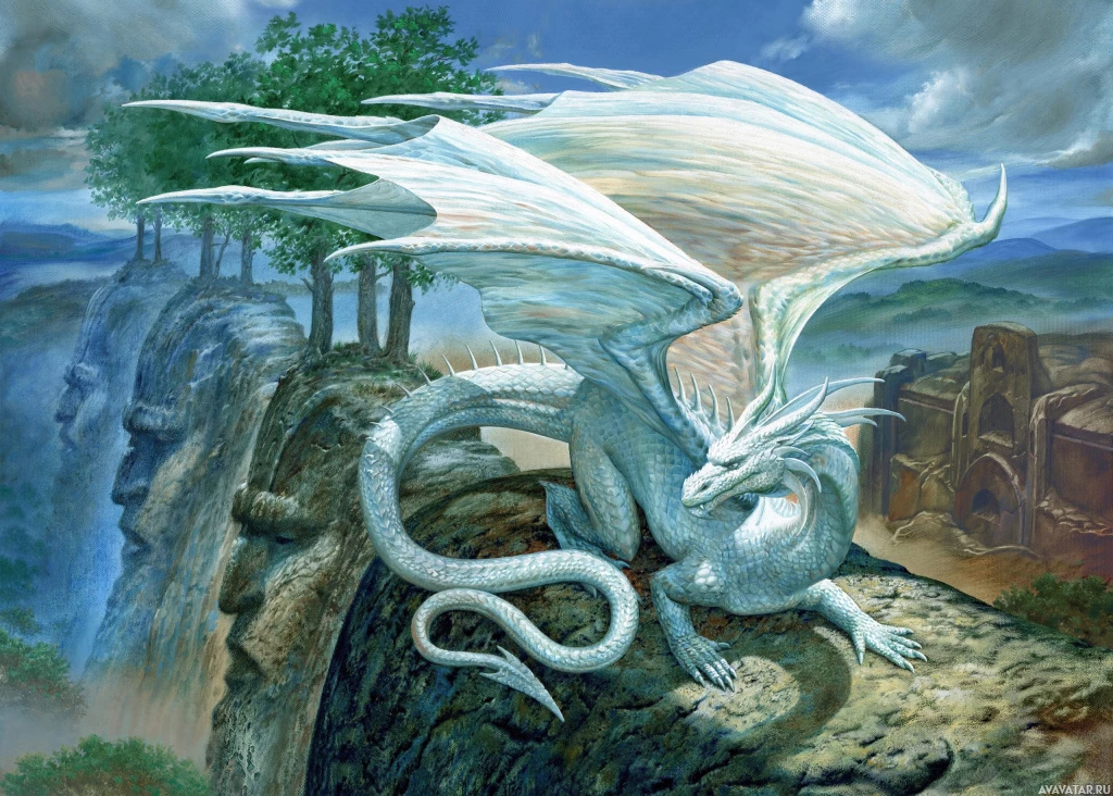 На картинке изображена фантастическая сцена с участием дракона. Это типичная черта жанра фэнтези в искусстве, где часто изображаются мифические существа, такие как драконы.