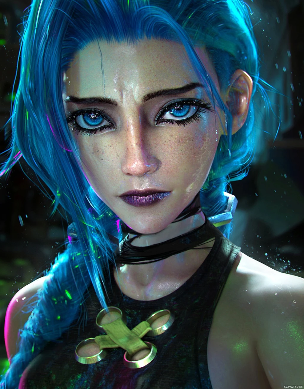 a female figure, possibly from the game "League of Legends," given her distinctive appearance which is reminiscent of certain characters in that game. The character is adorned with a dark clothing piece and has various elements that could suggest she is a part of a fantasy or