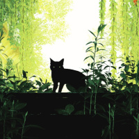 The picture shows a silhouette of a cat sitting in what appears to be the entrance or exit of