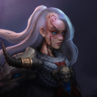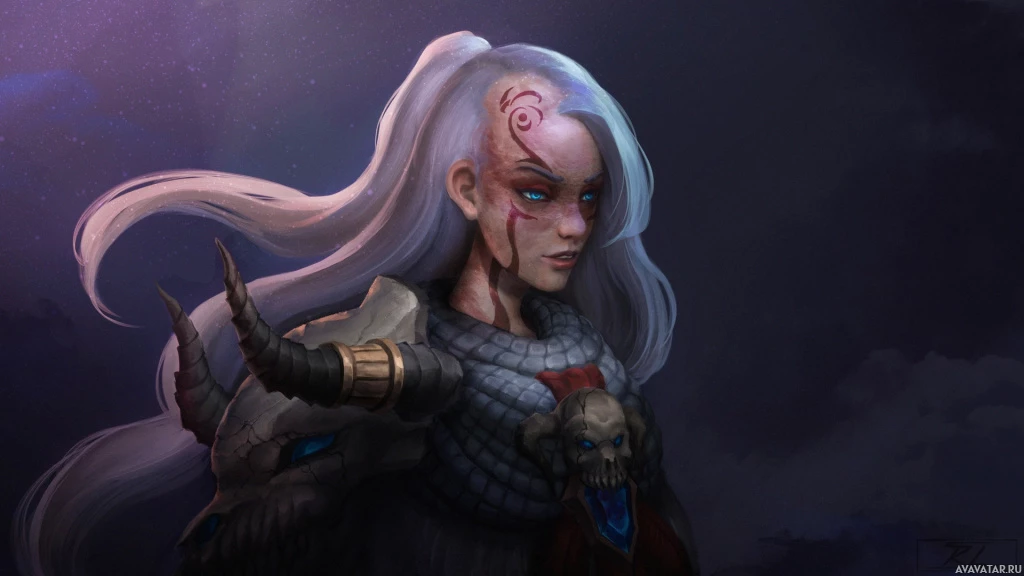 The image shows an illustration of a character. This character appears to be a female with white hair and is wearing a fantasy-themed armor, suggesting she might be from